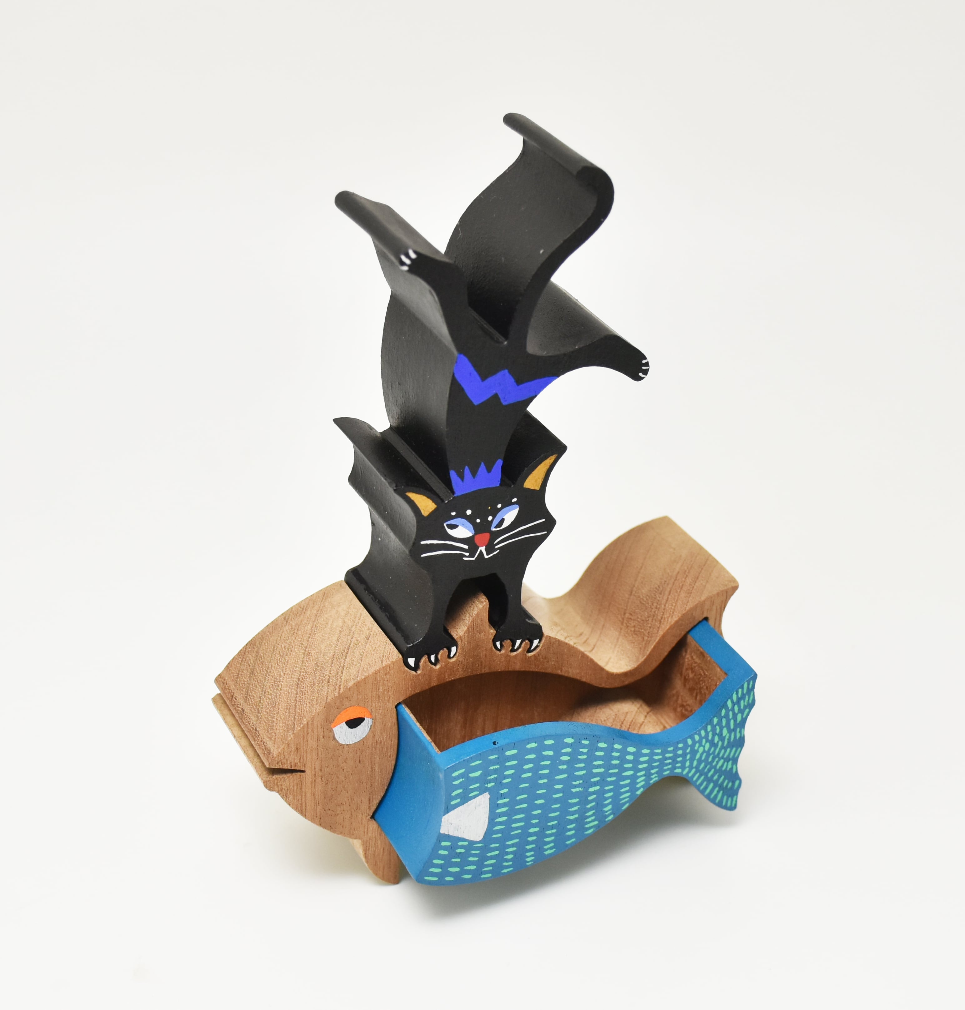 色付けはアクリル絵の具を使い筆で描き込み、ニスで保護しています。