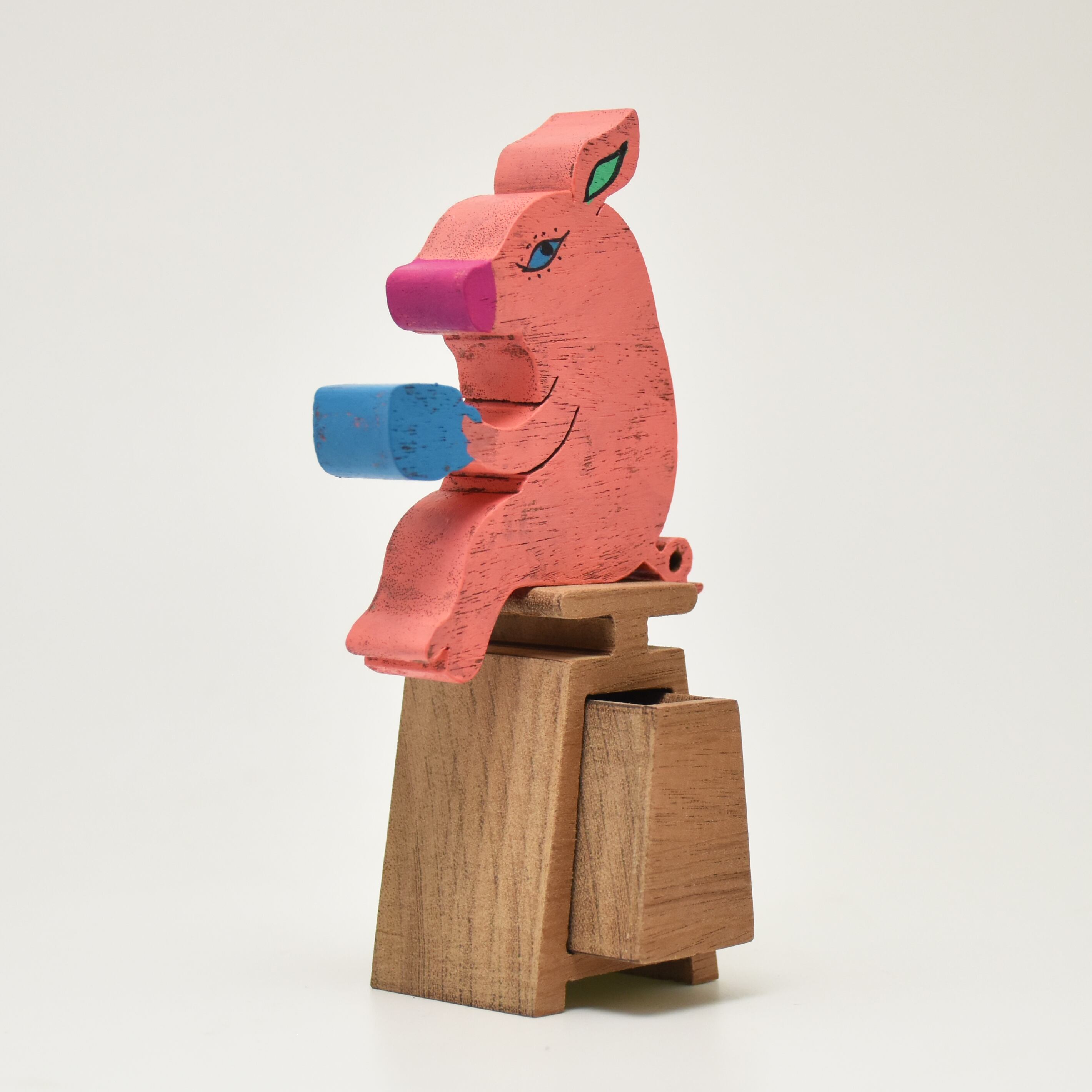コップを持っているブタ。