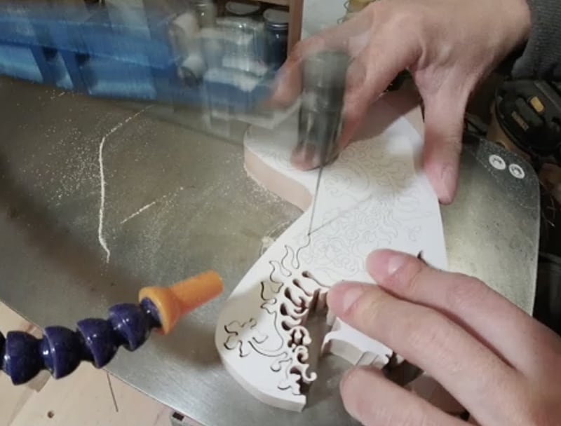 木材は糸鋸盤で1つ1つカットし、